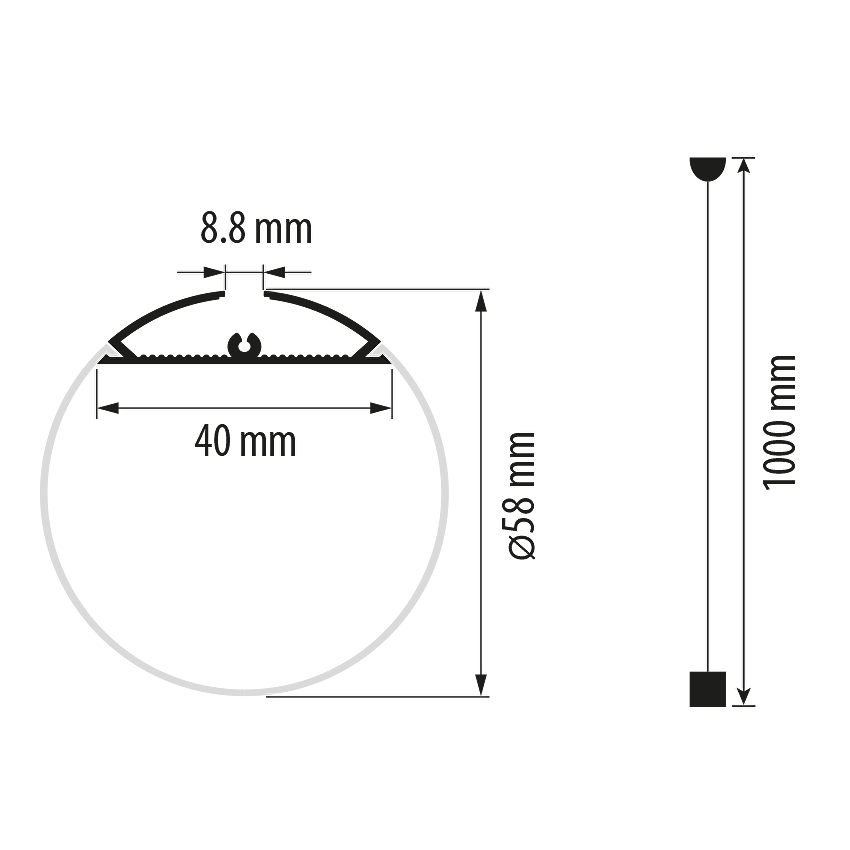 Profil de aluminiu, cilindru, pentru montare pe suprafata