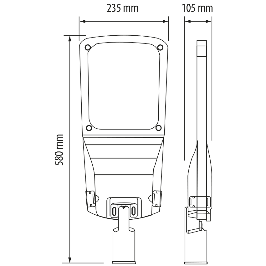 Lampa LED pentru iluminat stradal, parcari, zone urbane, zone industriale. Folosita pentru a inlocui lampile stradale traditionale, cu alimentare directa la retea.
